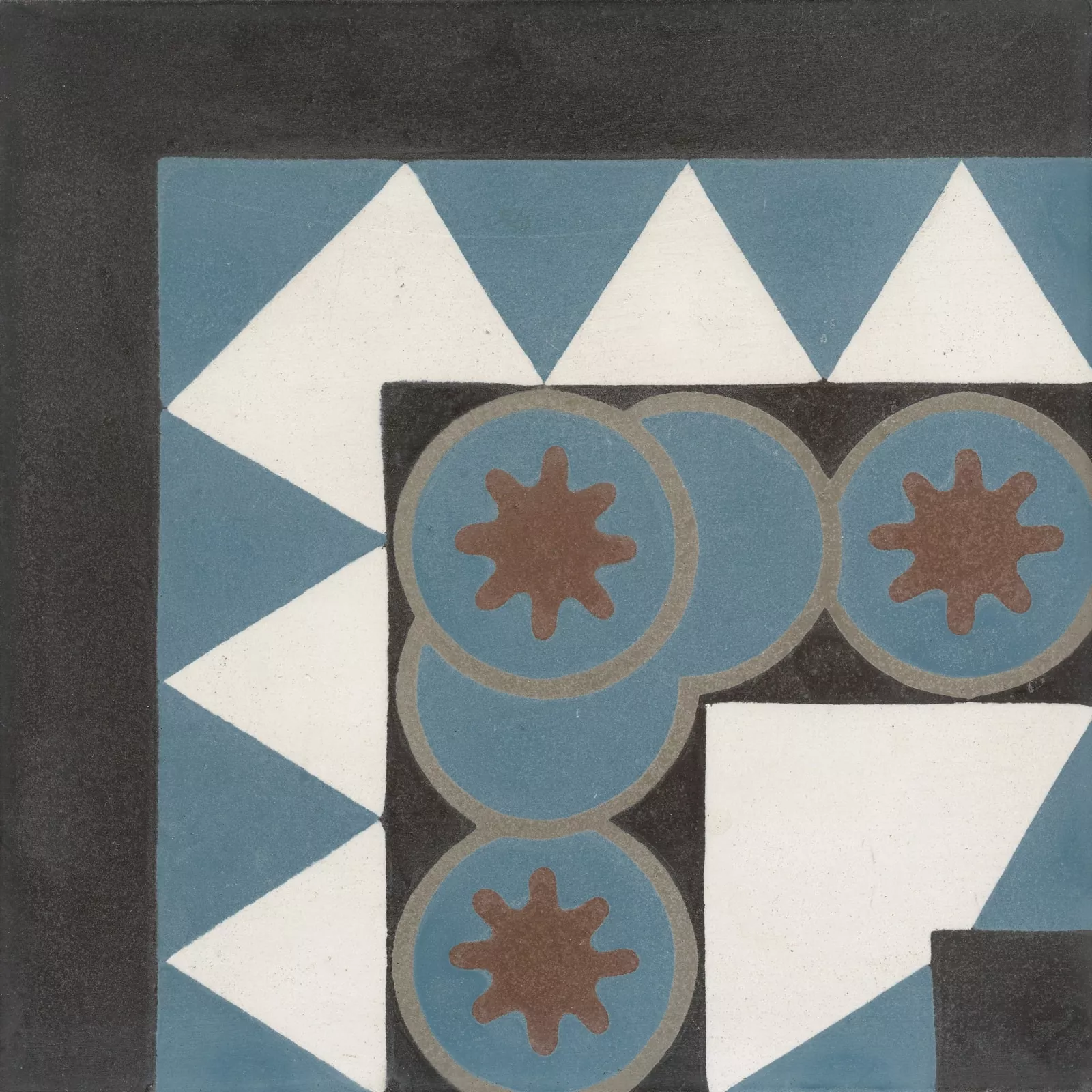 Mehrfarbige kleinteilig gemusterte Zementfliese.