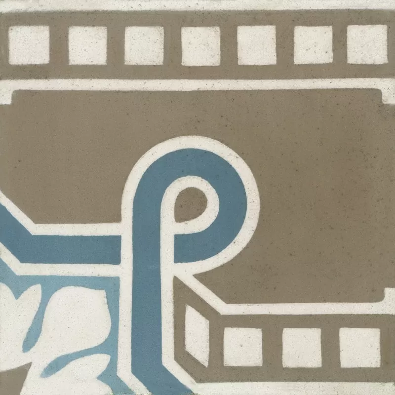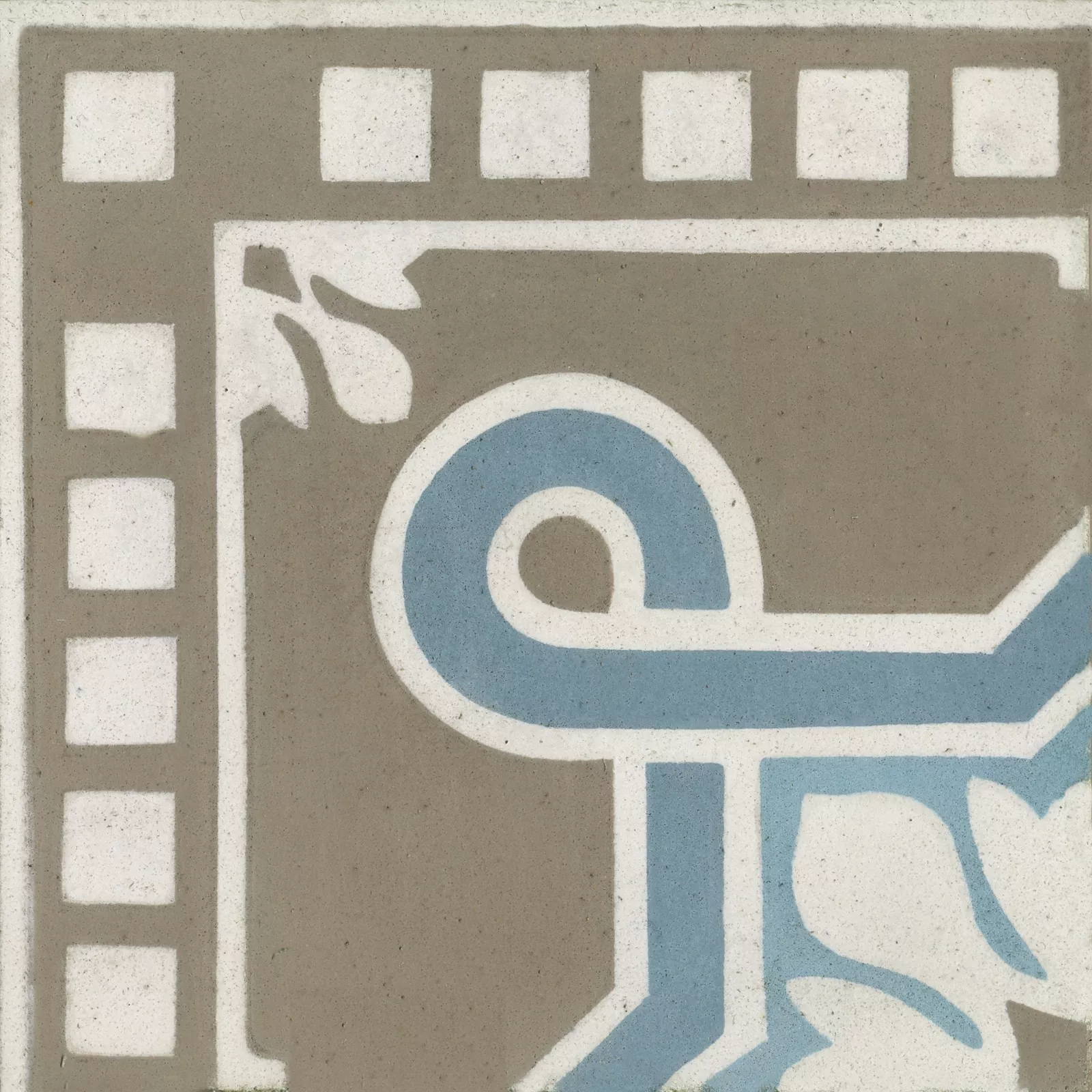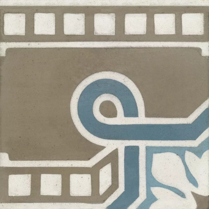 Mehrfarbiges Muster in Graubraun- und Blautönen.