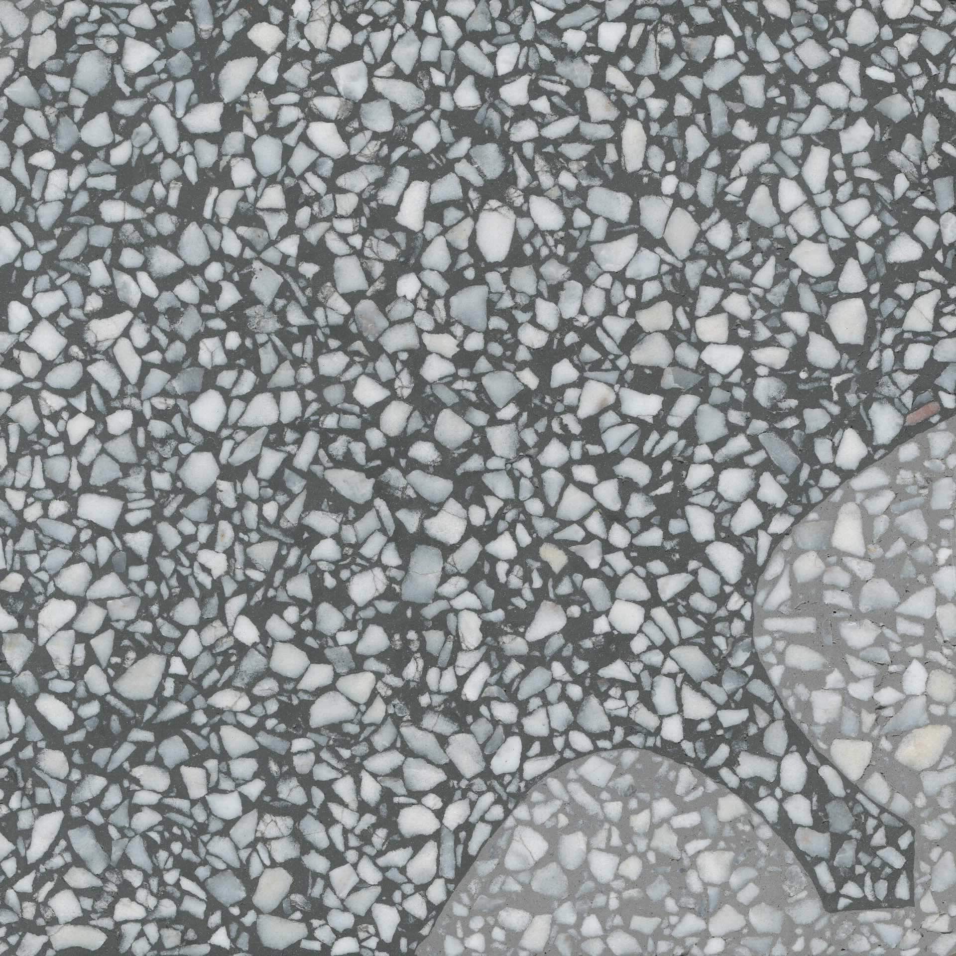 Dieses großflächige Terrazzomuster gibt es bei VIA in zwei Varianten - hier die mit dem dunkleren Grauton.