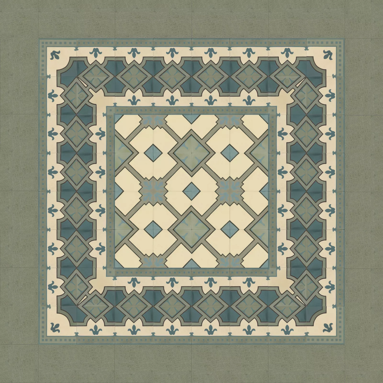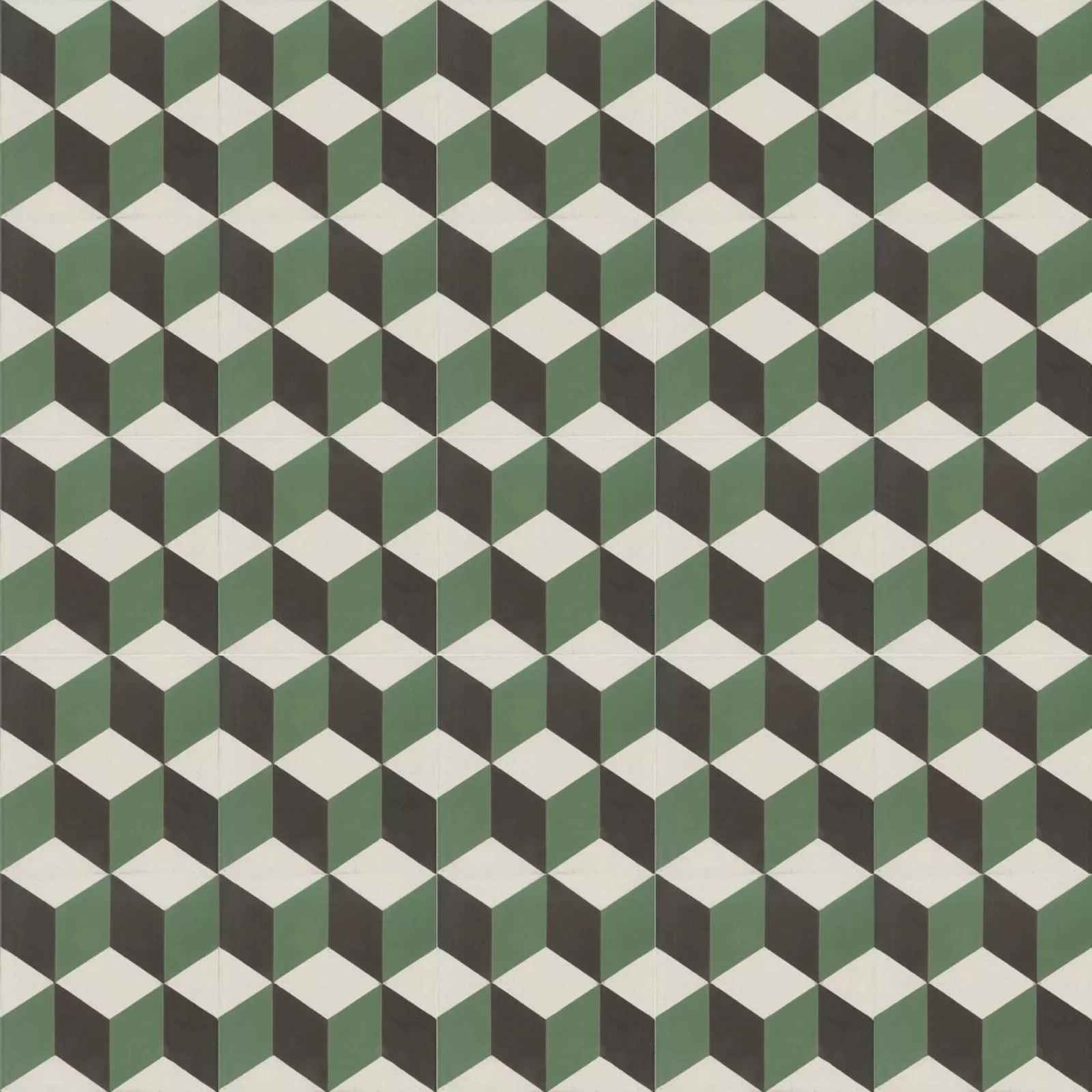 VIA Zementfliese mit einem Muster aus grünen Dreiecken im Treppenhaus