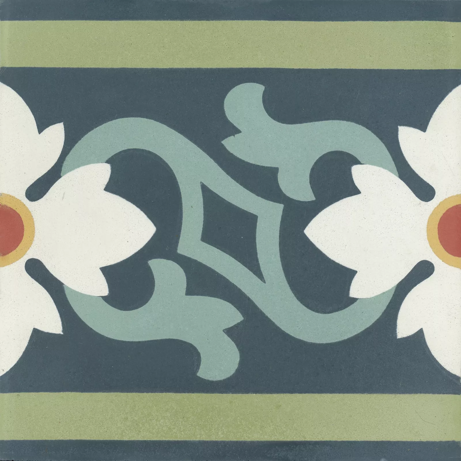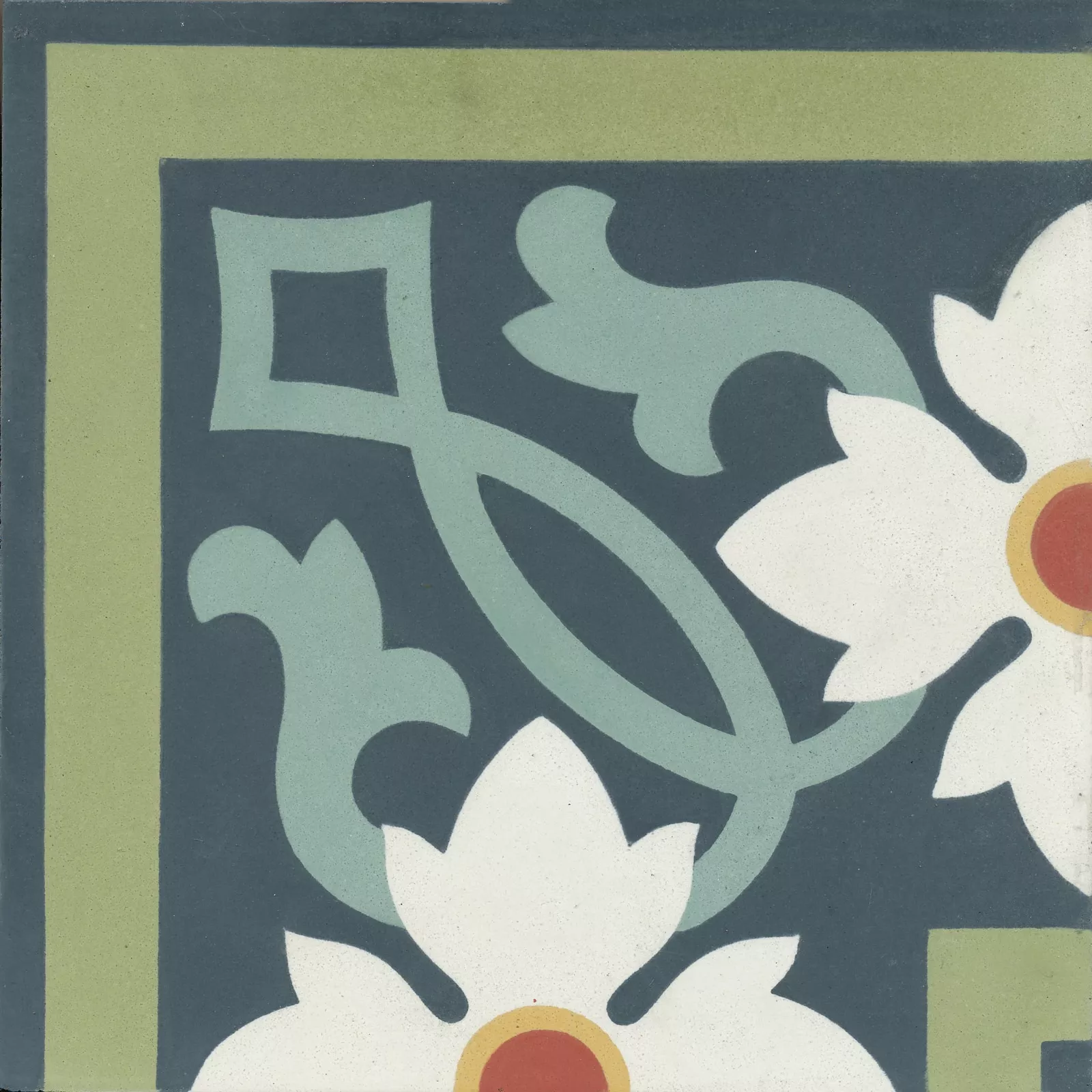 Florale, mehrfarbige Zementfliese, die kleine Schwester unserer Blumenwiese.