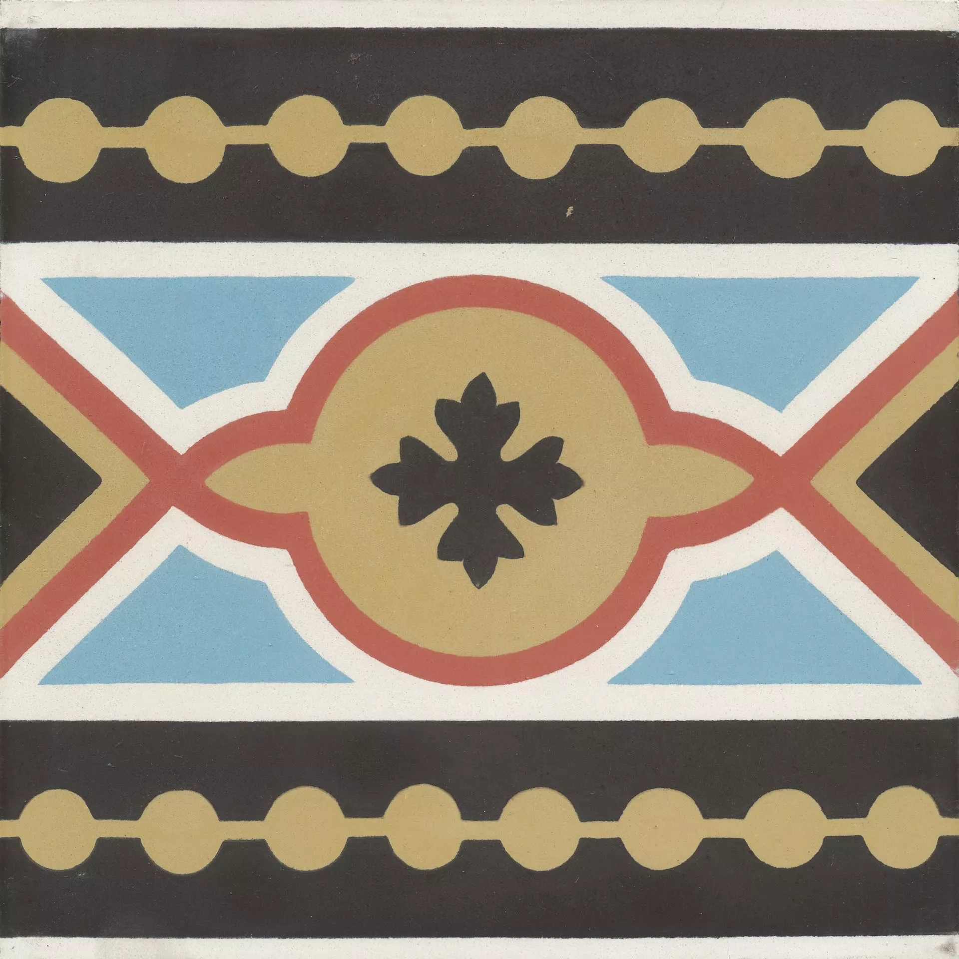 Die mehrfarbige Zementfliese kann mit dem wunderschönem Rand N° 52156 und der dazu gehörigen Ecke N° 53156 kombiniert werden.