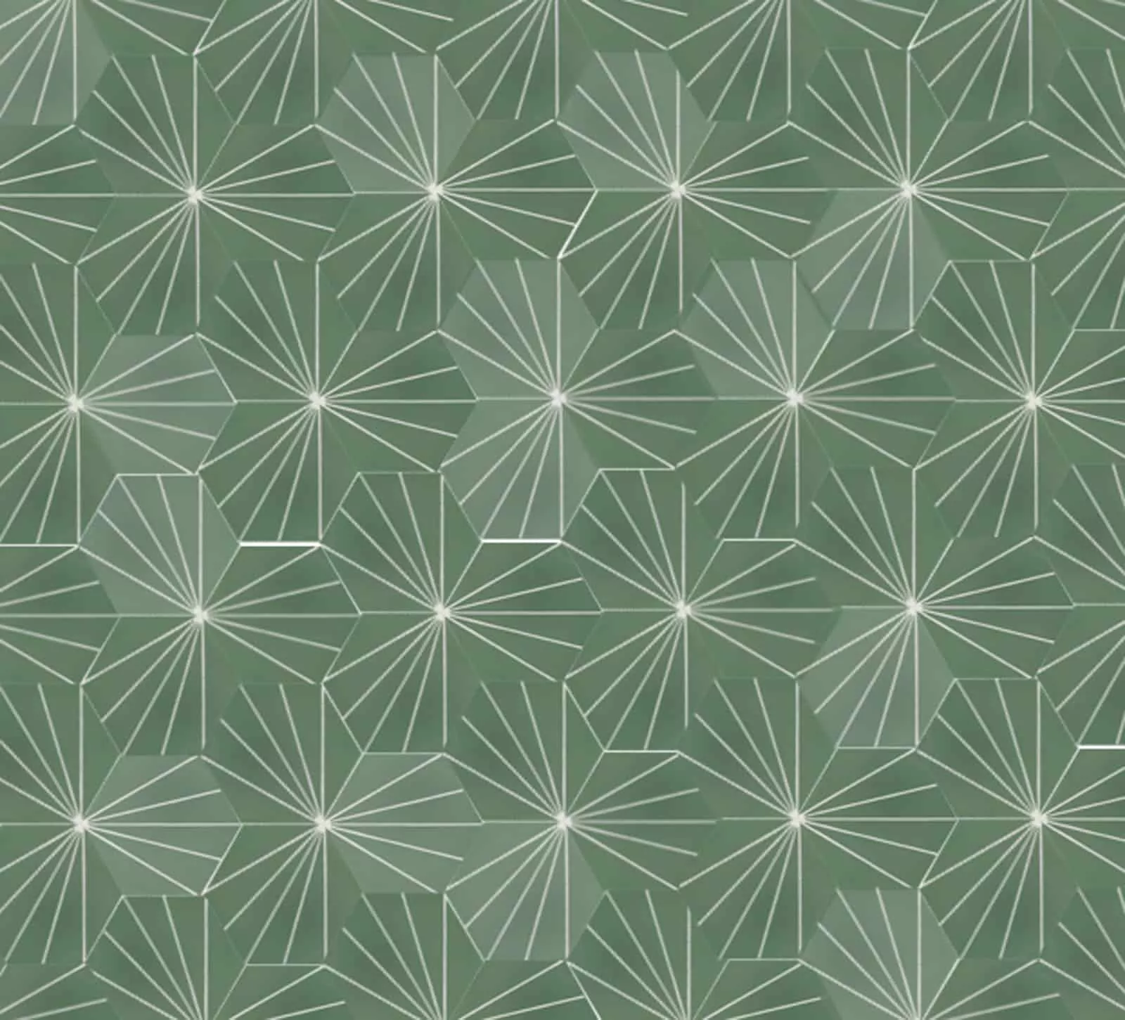 VIA Zementfliese mit einem Muster aus grünen Dreiecken im Treppenhaus