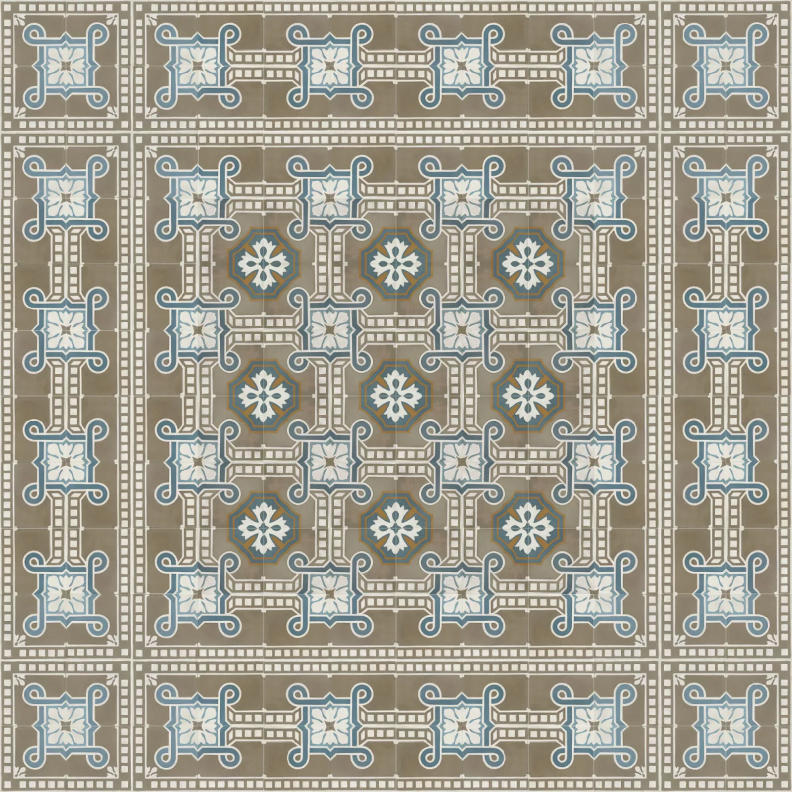 Durch die teilmanuelle Produktion ist jede unserer Zementfliesen einzigartig. Sie variieren geringfügig in ihrer Materialstärke, was bei korrekter Verlegung jedoch ausgeglichen wird, und in der Farbigkeit  - die Farbnuancen der einzelnen Zementfliesen lassen ein wunderbar changierendes Gesamtbild entstehen, eines der Hauptcharakteristika von Zementmosaikplatten.