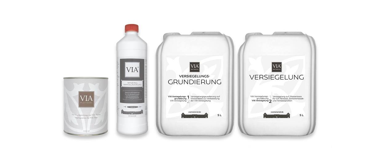 Nach dem Verlegen und Verfugen müssen VIA Zementmosaikplatten geschützt werden – durch Imprägnierung, Ölung oder Versiegelung.