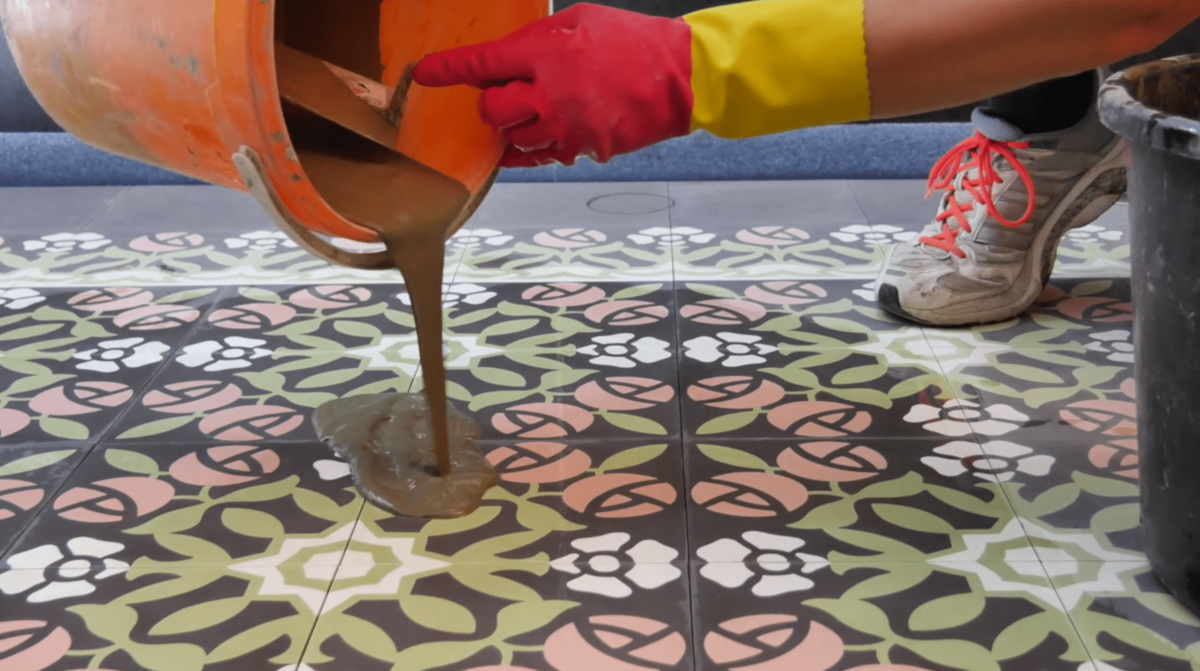 Zementmosaik- und terrazzoplatten verfugen und imprägnieren