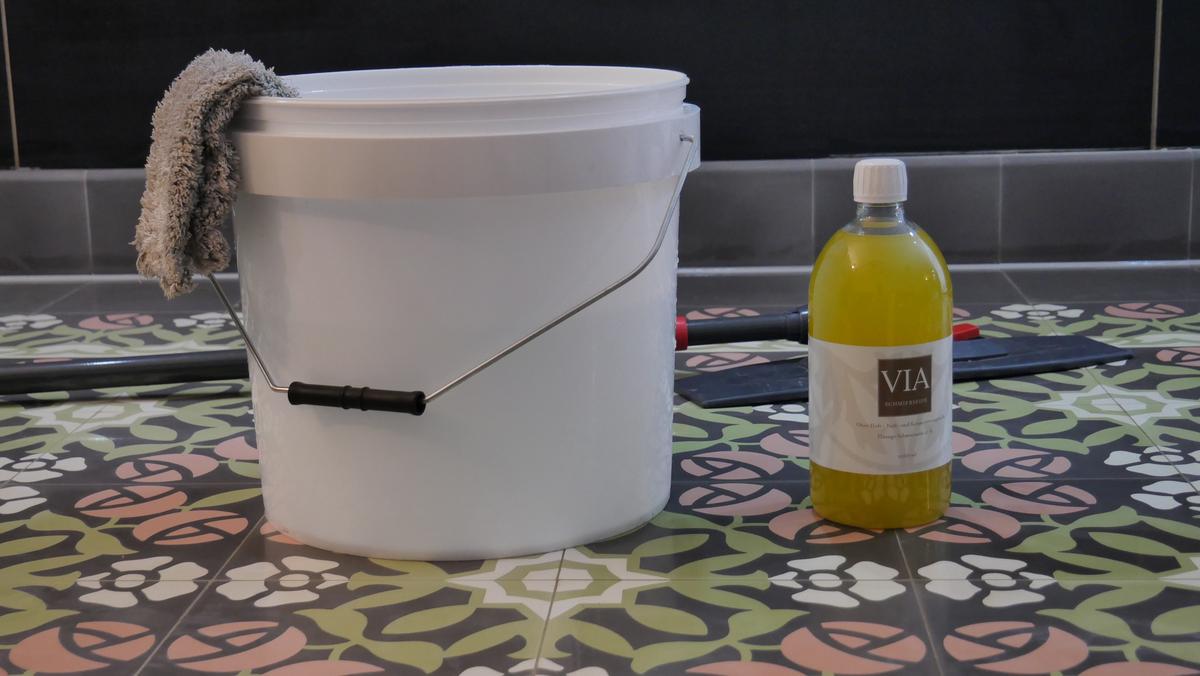 Das VIA Plattenöl zieht tief in die Kapillaren der Zementmosaikplatte ein und härtet stark aus.